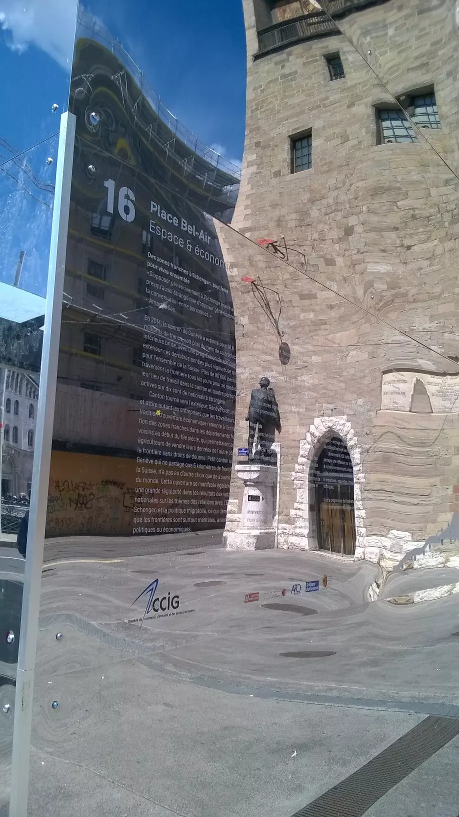 Ce partenariat s’exprime concrètement à quelques pas de la Chambre, à la place Bel-Air, par l’une des 25 bornes-miroir disposées dans le Grand Genève. La nôtre a pour titre – évidemment ! – « Espace et Economie ». Le reflet, en somme, de tout ce que la HES peut apporter à notre tissu économique régional…