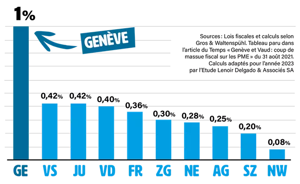 Le canton de Genève affiche le taux d’imposition de l’outil de travail le plus élevé de Suisse, à 1%. Contrairement à d’autres cantons comme Vaud, Neuchâtel, Jura, Fribourg, et Valais, Genève ne prévoit pas d’abattements sur l’outil de travail, ce qui peut nuire à son attractivité pour les entrepreneurs. Philippe Fleury, directeur général de la Fédération des entreprises romandes Genève (FER Genève) rappelle que : « Un environnement fiscal compétitif est crucial pour inciter les entrepreneurs à établir et à développer leurs entreprises à Genève plutôt que de chercher des options plus favorables ailleurs. »