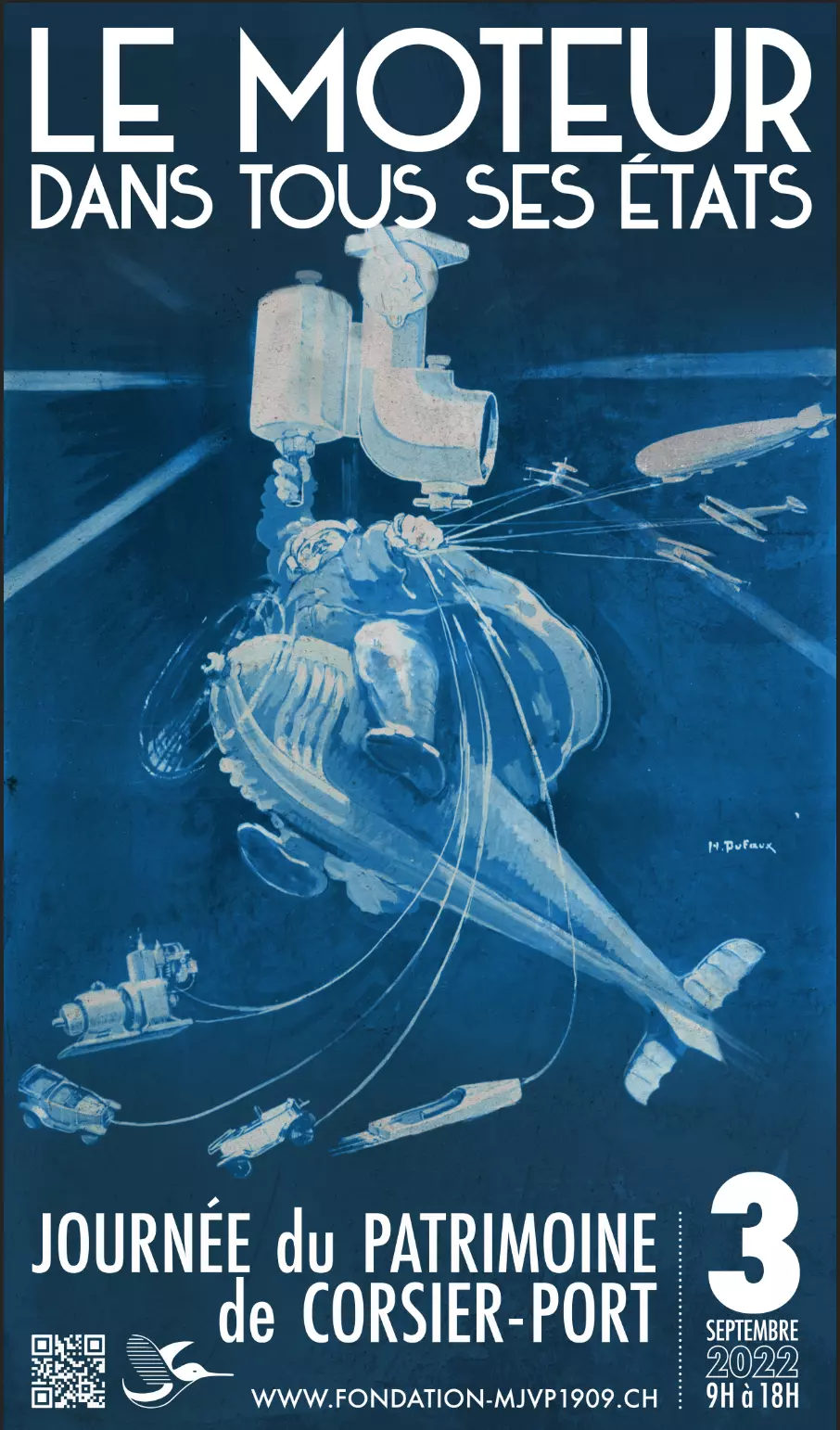 Exposition et démonstrations de moteurs Films historiques Conférences Balades en voitures anciennes (PicPic et autres modèles) Balades en canots moteur classiques Exposition de tableaux « Les Dufaux au Fil de l’Eau » Buvette de 9h à 18h Restauration de 11h à 15h Animation musicale Trio de Jazz band